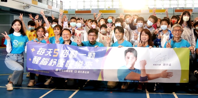 教育部體育署副署長洪志昌表示,持續與董氏基金會合作推展校園規律運動方案,設計趣味、易上手的「樂動紓壓5招」,深受學生喜愛,不受空間限制及類似功夫又能快速達成全身運動的招式,正好可作為學生在家運動的項目!為了吸引更多青少年參與運動,這活動也辦理運動紀錄徵件比賽,兒童青少年發揮創意自創5招並拍攝成影片進行投稿,有104組同學報名參賽。看到同學們認真投入,都表示覺得招式有趣,感受運動後的好處,收穫滿滿!