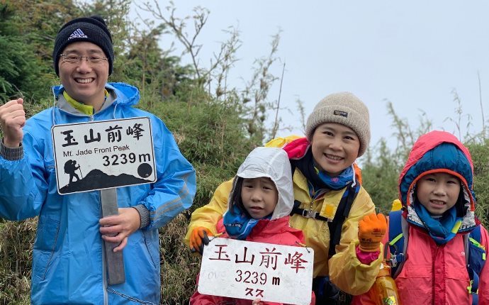 圖說:蔡依玲全家和一群喜愛戶外活動的家庭組成的運動團體,每年都會選定一個鍛鍊挑戰帶孩子完成,圖為全家一起挑戰攀登玉山。