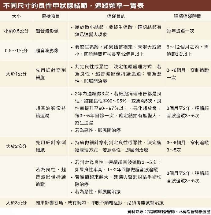 不同尺寸的良性甲狀腺結節,追蹤頻率一覽表