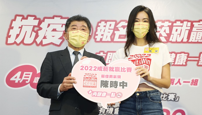 藝人隋棠號召民眾「抗疫,報名2022戒菸就贏比賽~」衛福部陳時中部長率先報名,挑戰戒菸。即日起至4月底前,一位吸菸的參賽者和一位不吸菸的見證人,兩人一組,快上「國民健康署網站」或「華文戒菸網」報名,5月2日到29日確實戒菸,就有機會抽中最高獎金30萬元(一組)或6萬元(六組)等獎項!