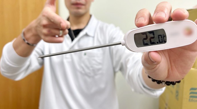 陳昱升營養師表示,料理溫度計具備探針,可直接量測食材溫度,是家庭料理好幫手。圖/花蓮慈濟醫院提供