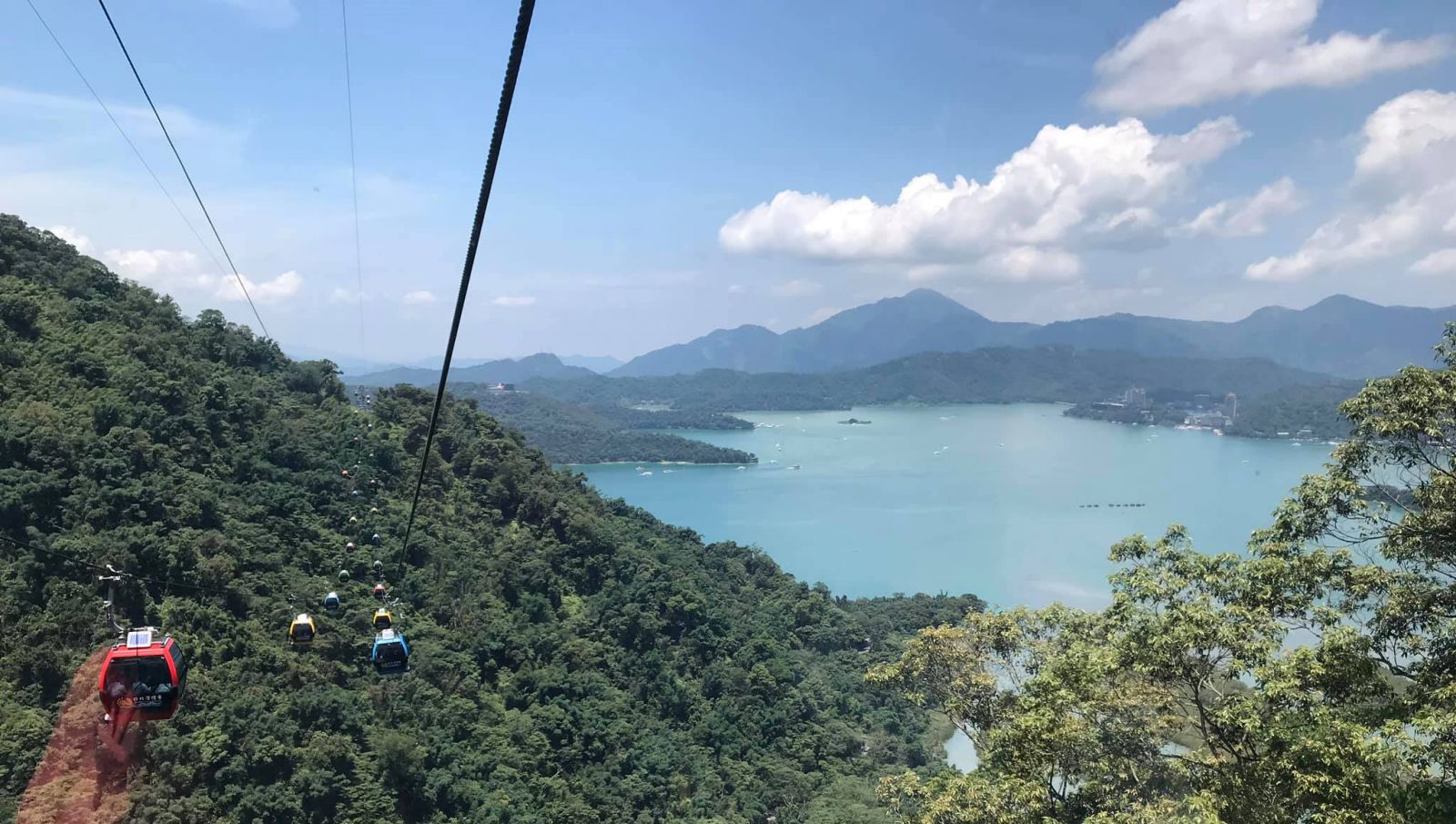 坐日月潭纜車可眺望美麗的湖光山色。(圖╱蔡睿縈攝)