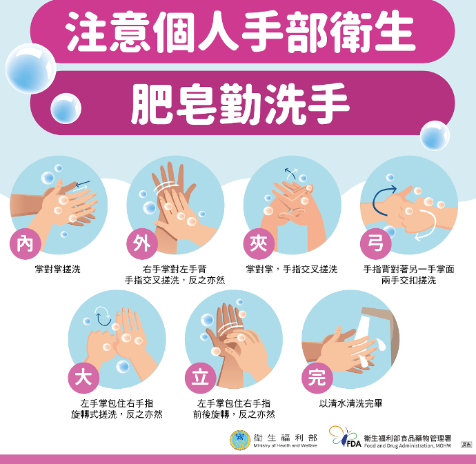 食藥署分享肥皂洗手的順序口訣。(圖/擷取自食藥署藥物食品安全週報網站)