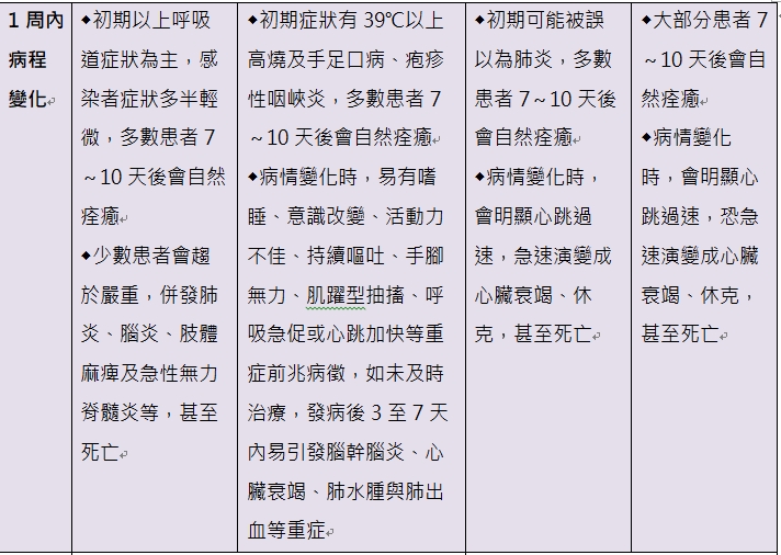 台中榮總兒童感染科與血液腫瘤科醫師黃芳亮,時任醫療第一線的總醫師,憶起腸病毒從手足口病、疱疹性咽峽炎的輕症,到腦幹腦炎、心臟衰竭重症,發病過程迅速,可能在數小時至數天內死亡,甚至緊急使用「葉克膜」搶救。當年全台400多人併發重症,最後78名兒童死亡,解剖發現,重症者大多有腦幹腦炎,藉由神經性肺水腫機轉引起急性心肺衰竭,社會恐慌氛圍與新冠肺炎疫情類似。
