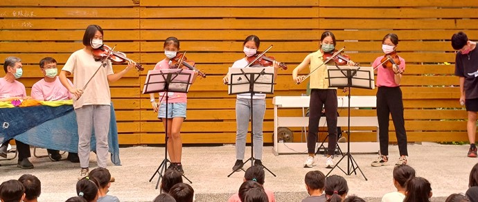 雲林縣潮厝國小學生們演奏小提琴,為活動拉開美好序幕。
