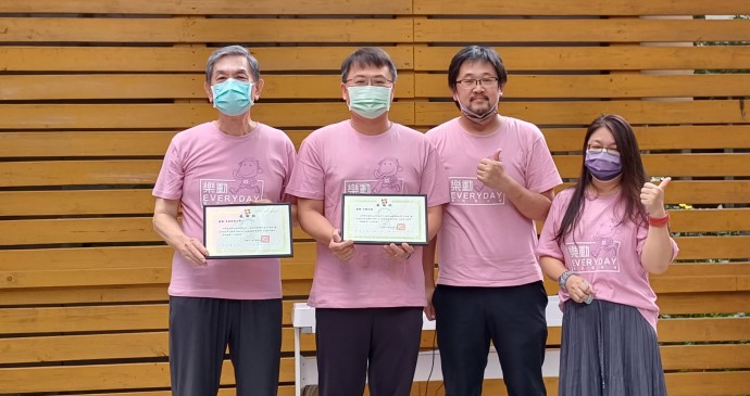 頒發鼓勵狀,肯定同學們身體力行,運動紓壓做公益,培養規律運動好習慣!