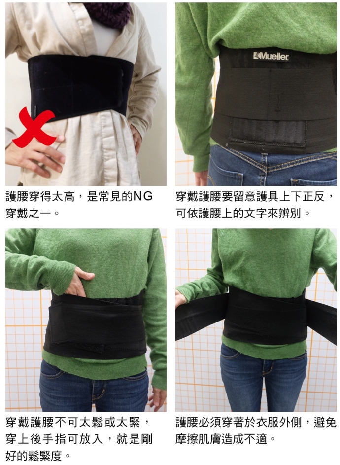 4.護腰穿戴太鬆或太緊:保持手指可放入腰部與護腰之間的鬆緊度。