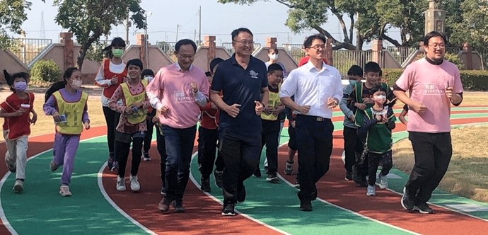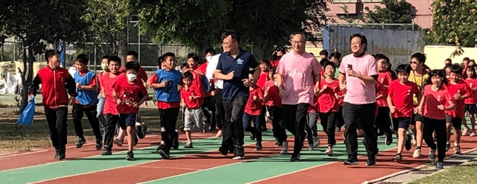 樂動校園激勵表揚日上,來賓與學生們一起慢跑操場,跑出好心情。