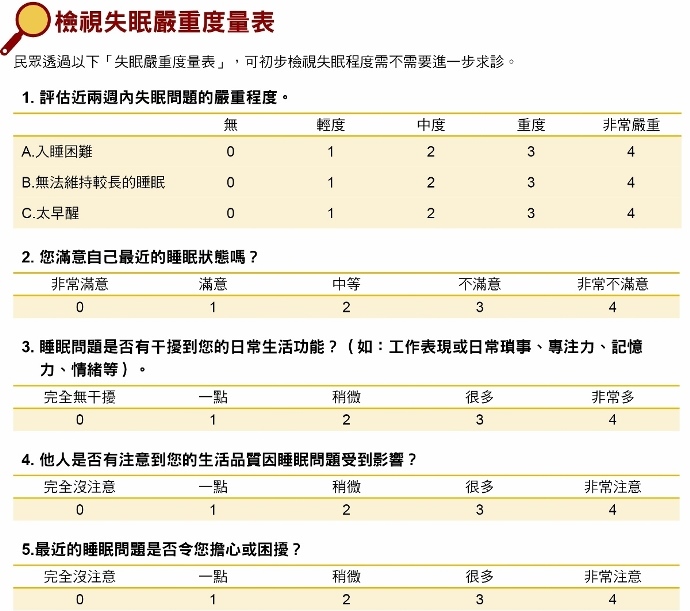 檢視失眠嚴重度量表