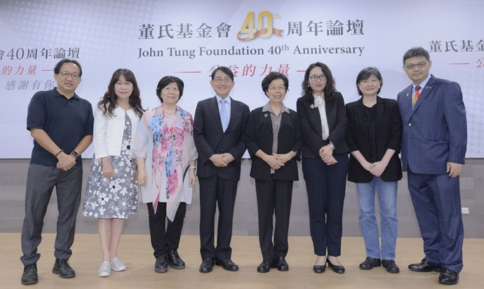 圖說:董氏基金會40周年論壇,董氏基金會張博雅董事長(右四)與心理衛生議題主持人邱弘毅所長(左四)及與談人心理健康司陳亮妤司長(右三)、柯慧貞講座教授(左三)、吳佑佑院長(右二)、葉雅馨主任(左二)、張家銘醫師(右一)、董旭英所長(左一)合影留念。(攝影/許文星)