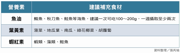 一表掌握富含魚油、葉黃素、蝦紅素的食物