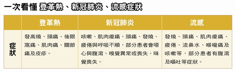 登革熱初期有發燒、頭痛、骨頭痛等症狀,似乎和流感、新冠症狀相似,民眾如何自我辨識?陳泓恩醫師解釋,雖然症狀類似,還是有些差異,比如新冠肺炎可能會出現嗅味覺異常;而登革熱則是劇烈的骨關節與肌肉疼痛等。