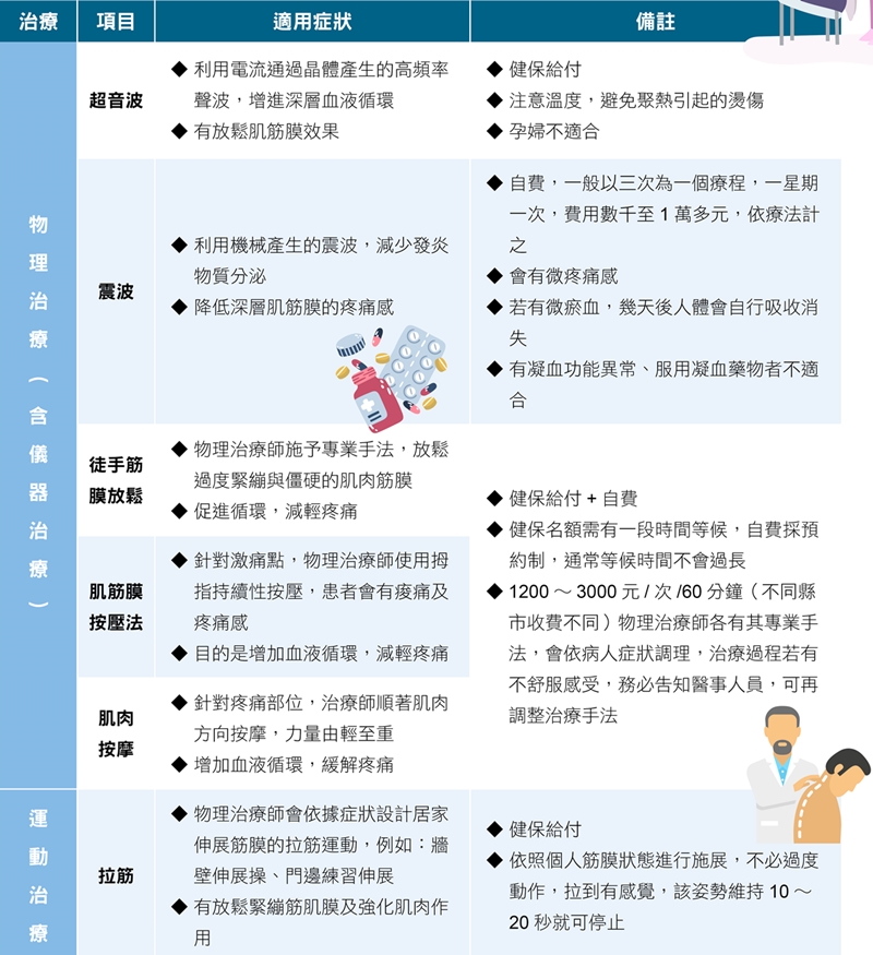 超音波、震波、徒手按摩,治療「肌筋膜疼痛症候群」的效用及費用