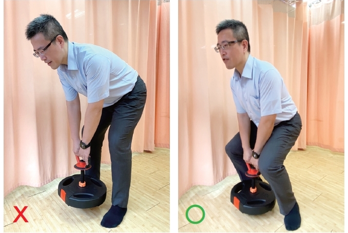 - 面對重物時,保持背部挺直,屈膝蹲下,利用腿部力量抬起重物,切勿彎腰用力。