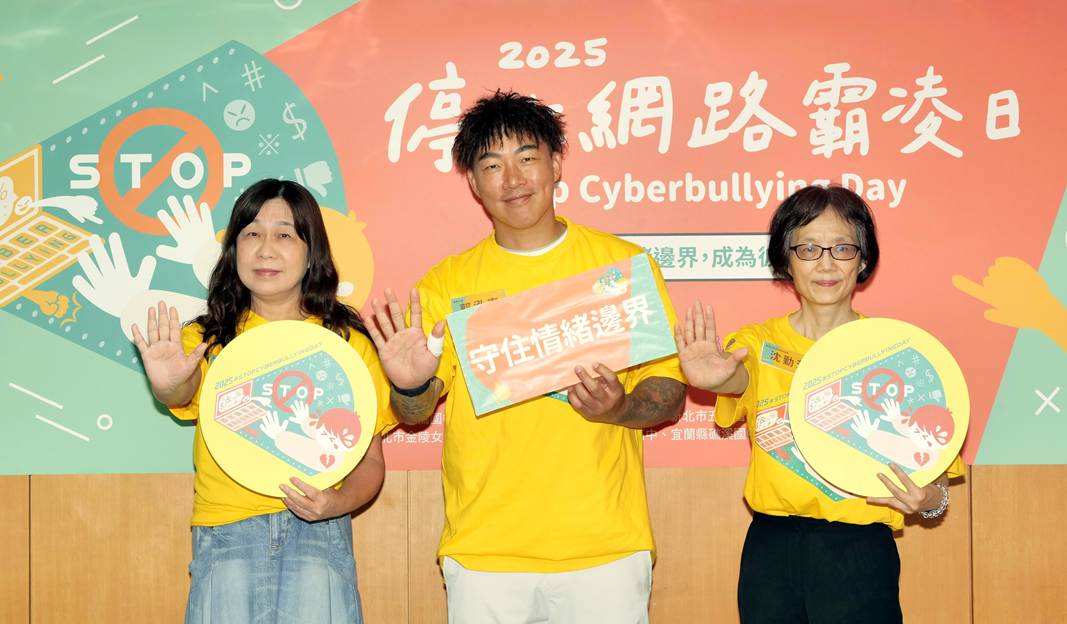 圖說:(左起)董氏基金會心理衛生中心主任葉雅馨、「台灣停止網路霸凌日」推廣大使郭泓志、新思科技資深研發處長沈勤芳一同呼籲大眾重視網路霸凌,照顧自己的心理健康,守住情緒邊界。