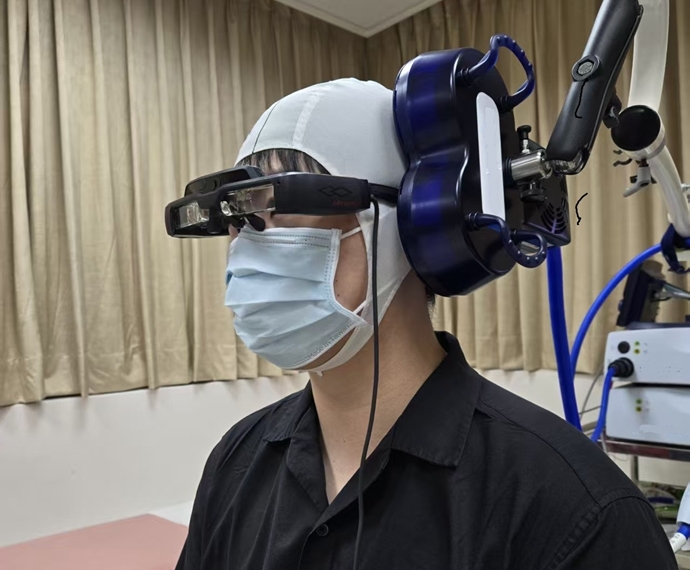 圖說:rTMS+AR擴增實境系統,讓視覺、磁場同步刺激大腦,提升治療失智症的效果。(圖/台北榮民總醫院提供)