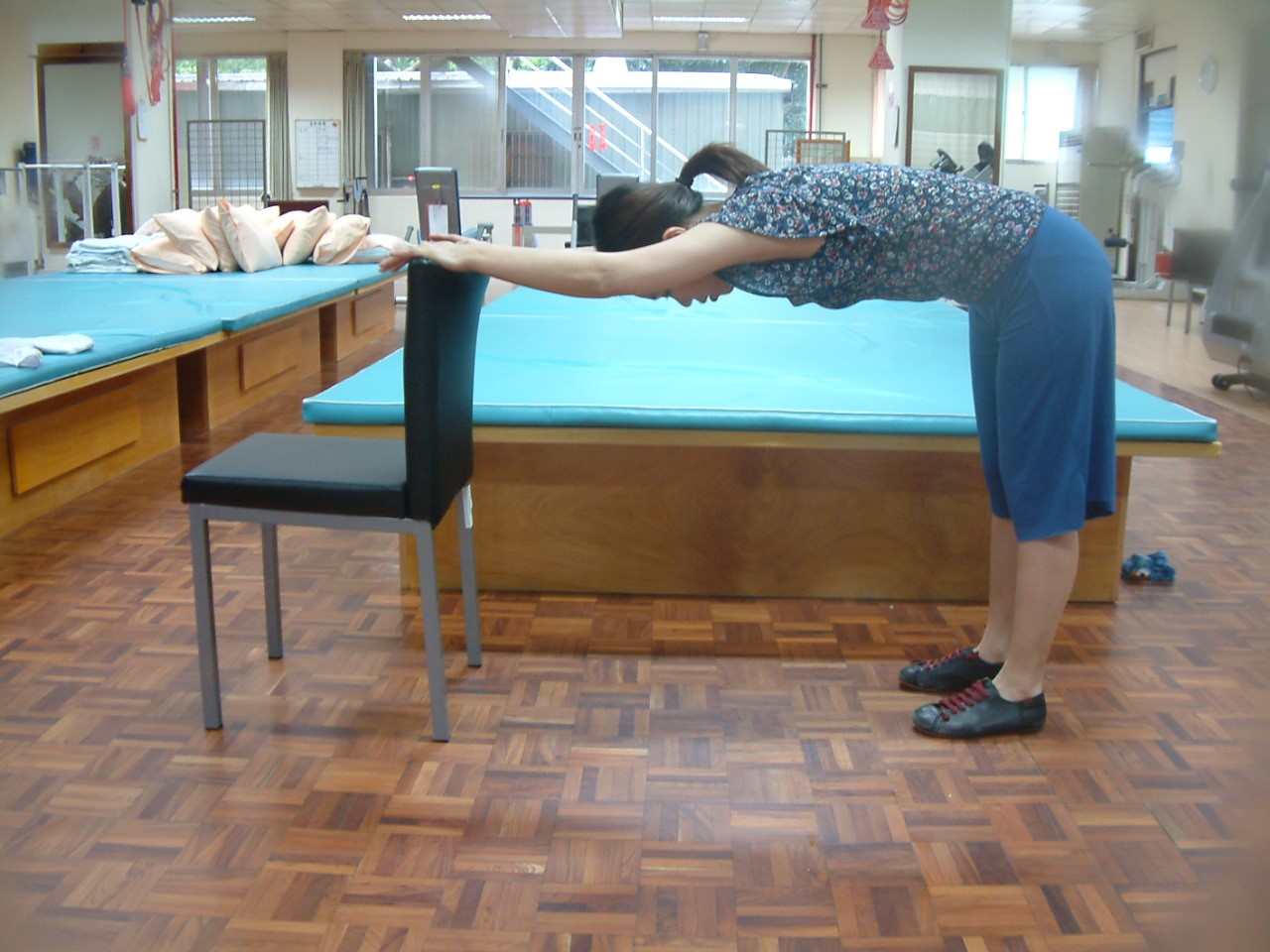 振興醫院物理治療師陳祐榕示範以下整套肌肉伸展運動,較多時間的人可以靜下來完整做完。